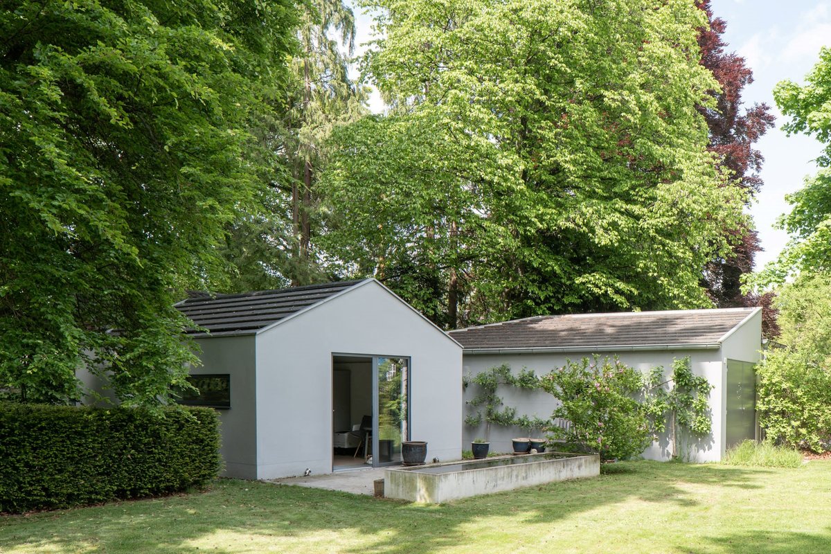 Auf einem eingewachsenen Grundstück im idyllischen Würmtal, umgeben von einem malerischen Baumbestand, liegt dieses moderne Architektenensemble. Das Herzstück des grauen Einfamilienhauses ist eine großzügige Küche. Ein großer Küchenblock und mehrere Ess- und Sitzplätze lassen noch viel Platz für Film- und Fotoaufnahmen. Die klare und durchdachte Gestaltung des Hauses spiegelt sich in seiner archetypischen Monopolyhausform wider, die zeitlos und modern ist. Eine harmonische Materialpalette aus weißen Wänden, warmem Holzfußboden und eleganten grauen Fensterrahmen schafft eine ruhige und einladende Atmosphäre. Raumhohe, flächenbündige Türen verleihen dem Interieur eine unaufdringliche Klarheit. Ein durchdachtes Lichtkonzept sorgt